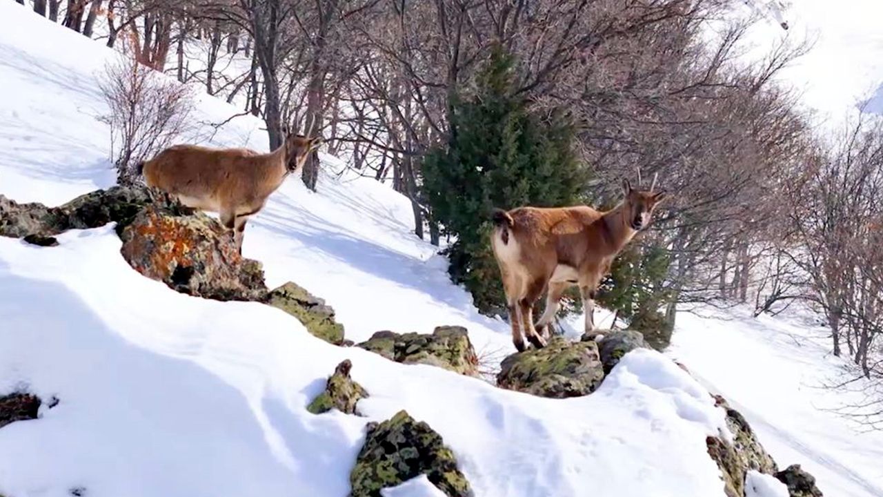 Karlar arasında dağ keçileri görüldü